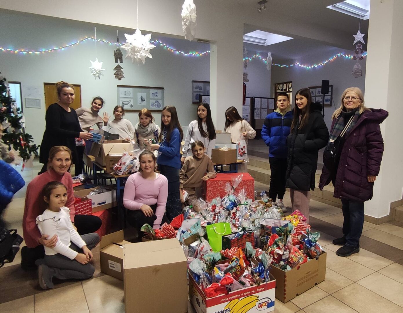 U školskom holu dočekali su ih nasmijani učenici koji su, poput malih vilenjaka, razvrstavali slatkiše za svoje vršnjake i tako im uljepšali blagdane.