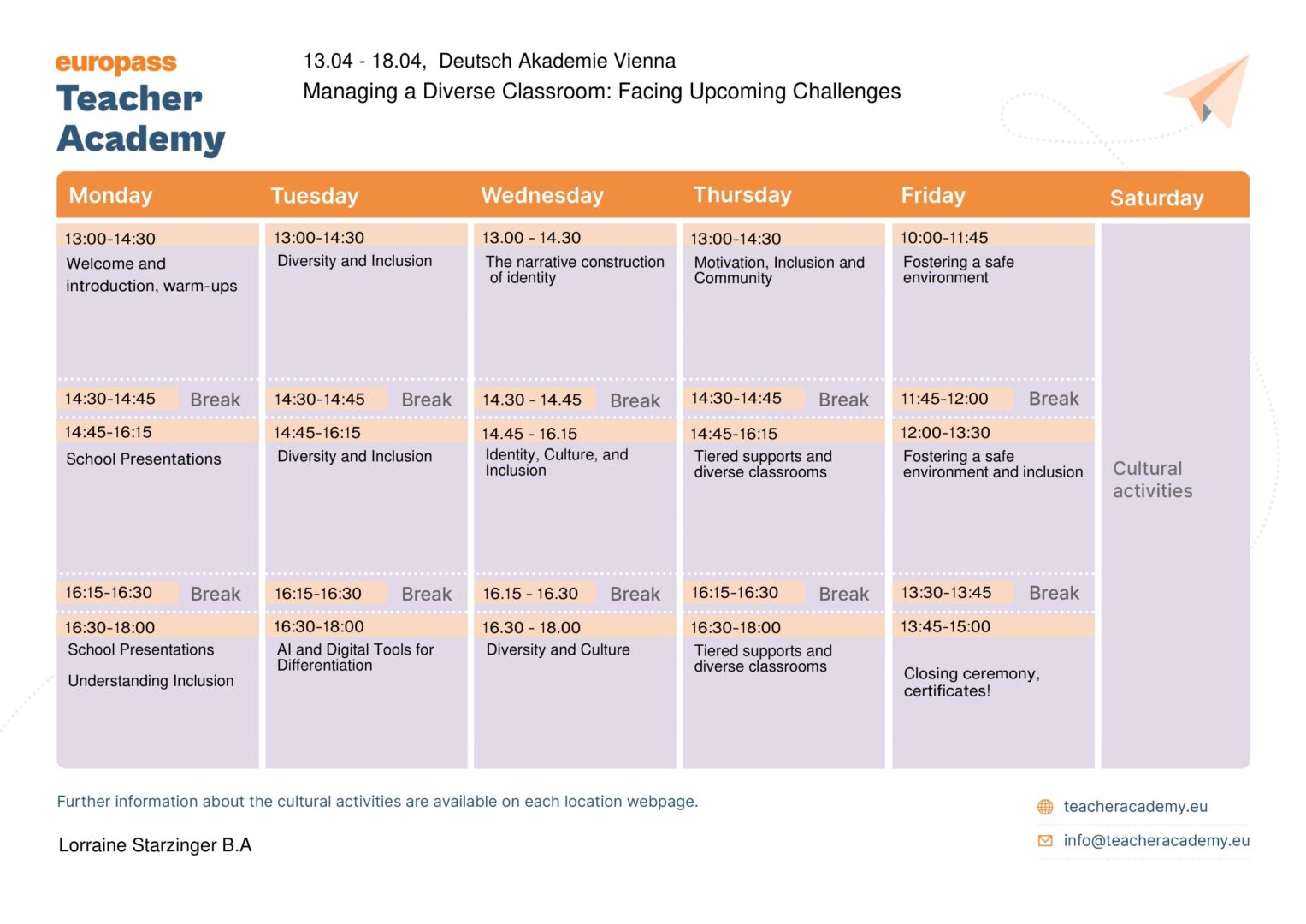 Od 13. do 18. travnja 2026. godine, sudjelovanje kolegice Doroteje Vojedilov, učiteljice engleskog i njemačkog jezika, na strukturiranom tečaju pod nazivom Managing a Diverse Classroom: Facing Upcoming Challenges u organizaciji Europass Teacher Academy