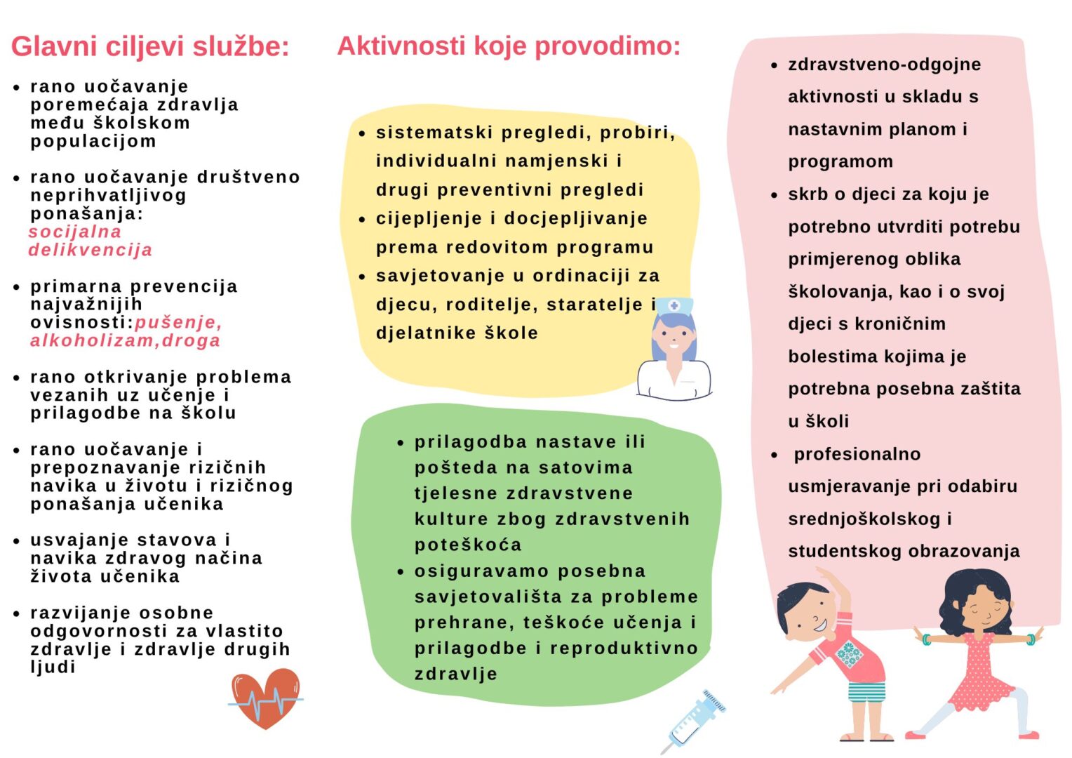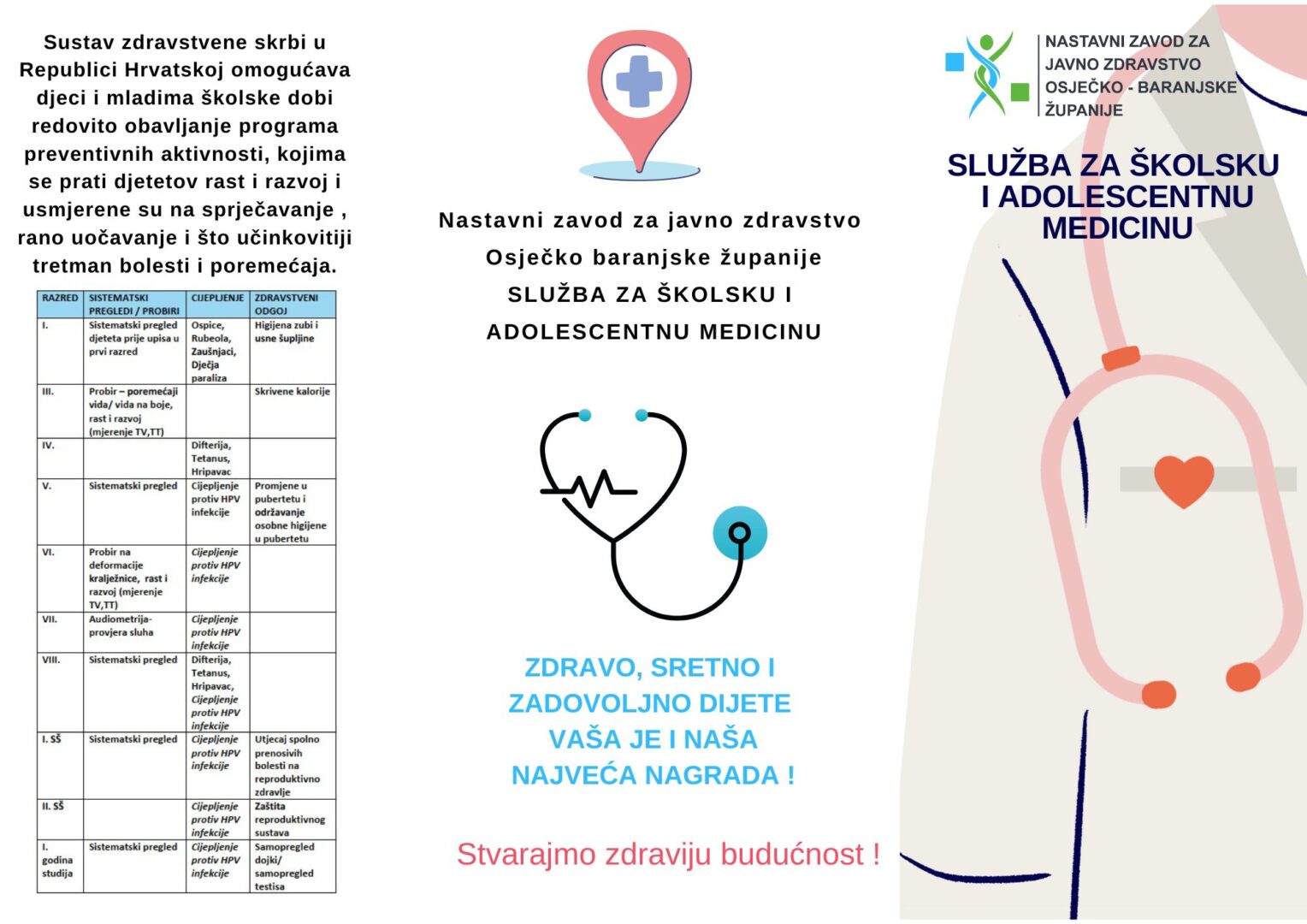 Sustav zdravstvene skrbi u Republici Hrvatskoj omogućava djeci i mladima školske dobi redovito obavljanje programa preventivnih aktivnosti, kojima se prati djetetov rast i razvoj i usmjerene su na sprječavanje, rano uočavanje i što učinkovitiji tretman bolesti i poremećaja.